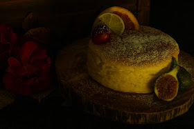 Desenforme depois de completamente frio e decore com frutos e açúcar em pó.